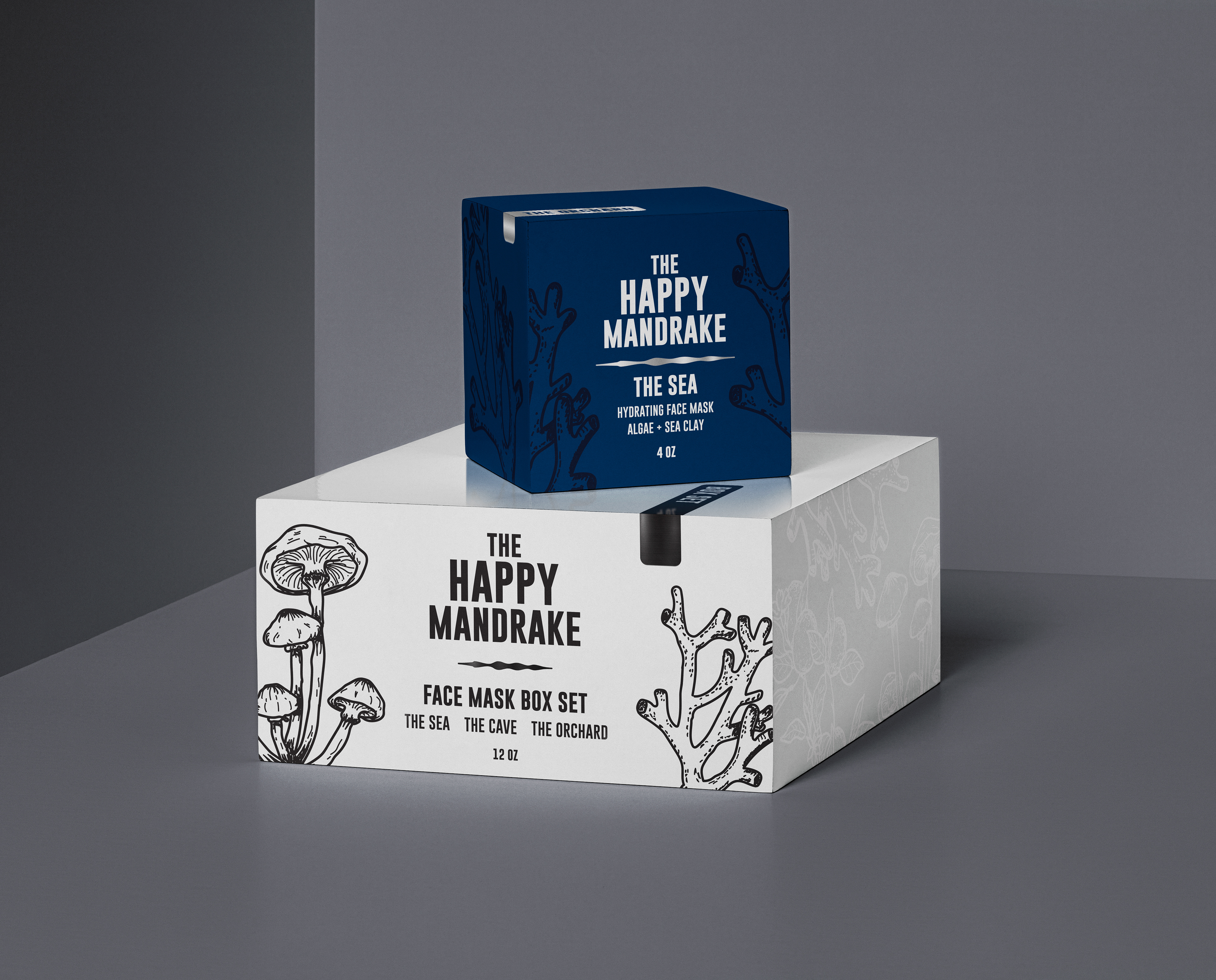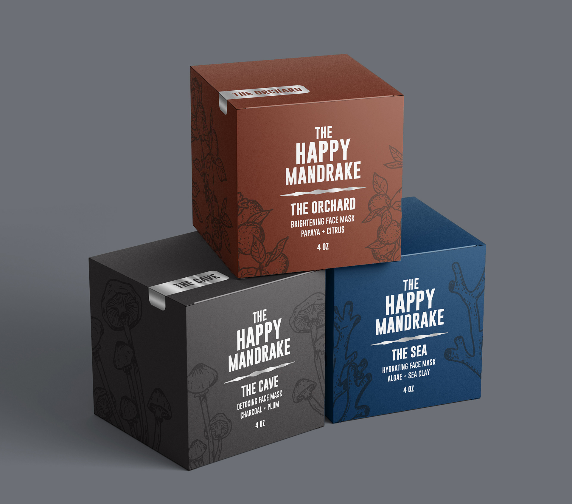 I feel like oftentimes when we think of luxury skincare products, what comes to mind is very minimalistic and stark packaging. For this set of three luxury facemasks, it was important for me to still convey that idea of luxury, but to also add an appealing twist to the packaging that would help it stand out and draw the viewer’s eye.